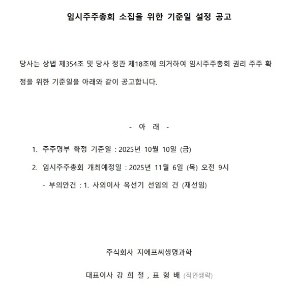 (2025.09.25) 임시주주총회 소집을 위한 기준일 설정 공고
